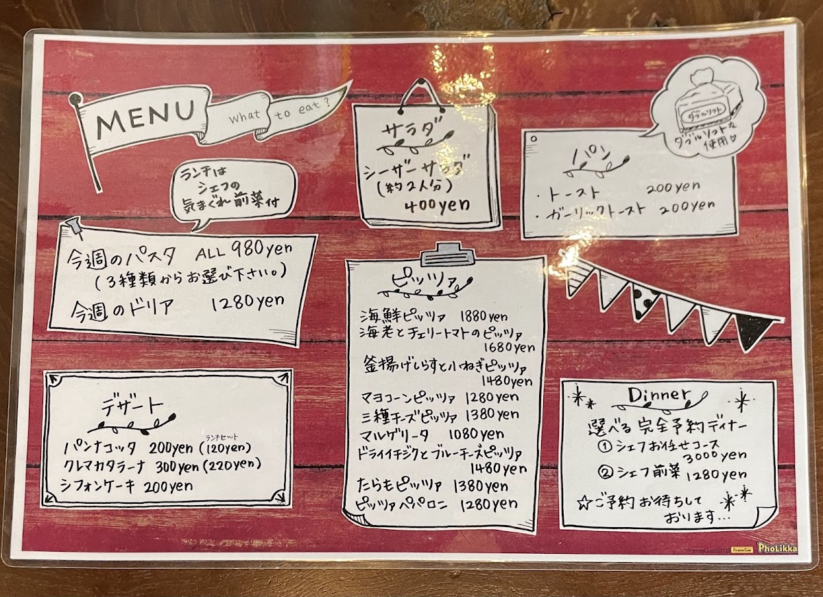 The menu features a rotating selection of dishes that emphasize fresh ingredients. Highlights include a delectable shrimp and cabbage pasta with yuzu pepper sauce at just 980 yen, and a rich cream seafood doria packed with flavorful seafood, priced at 1280 yen. Each meal is accompanied by a thoughtfully prepared appetizer and options like a classic hot coffee to round off the experience.